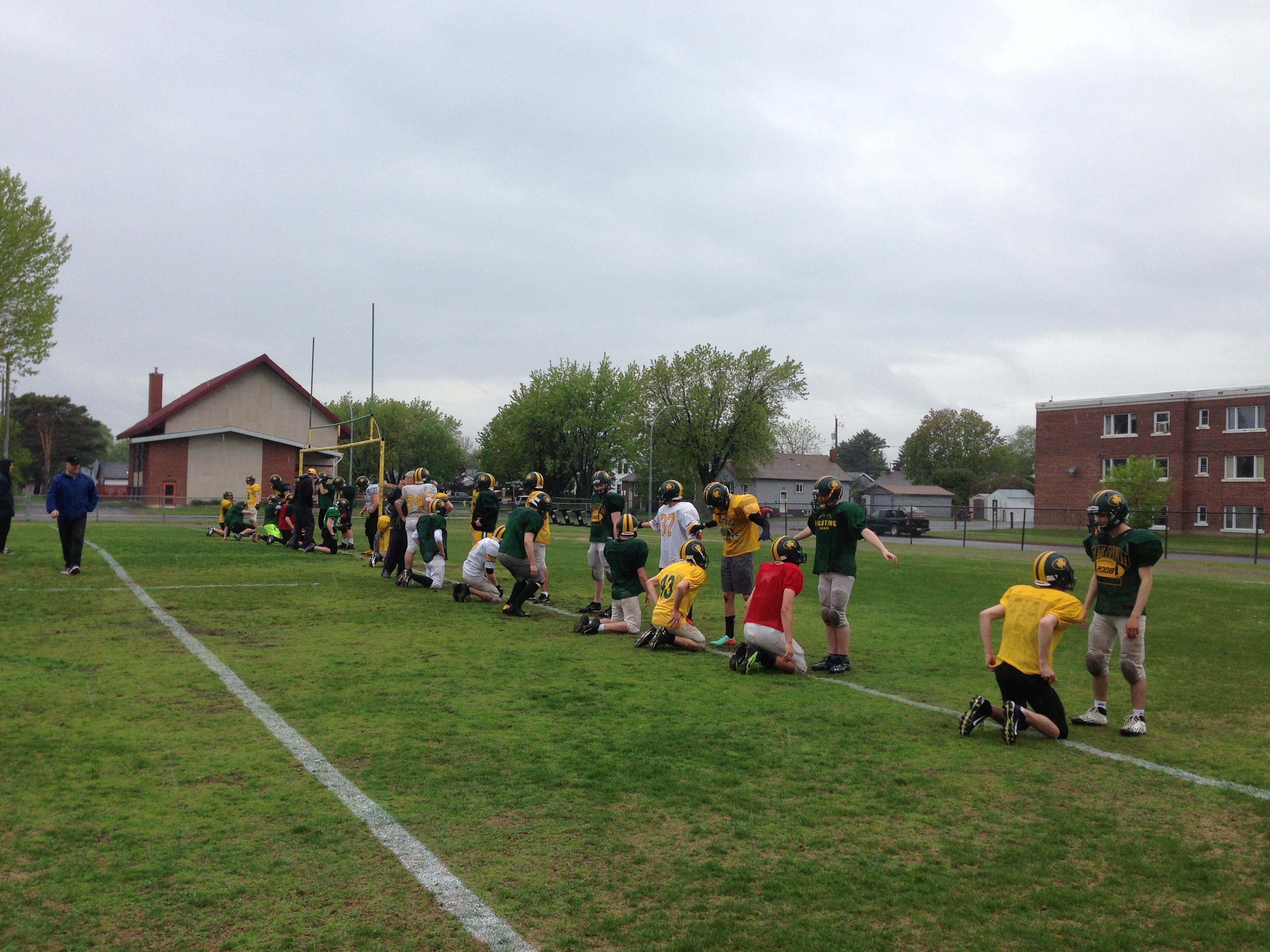 The two day junior mini-camp ran Monday, June 15 and Tuesday, June 16. It was very well attended, with over 30 Grade 8’s and 9’s present, many of whom had never played football before.